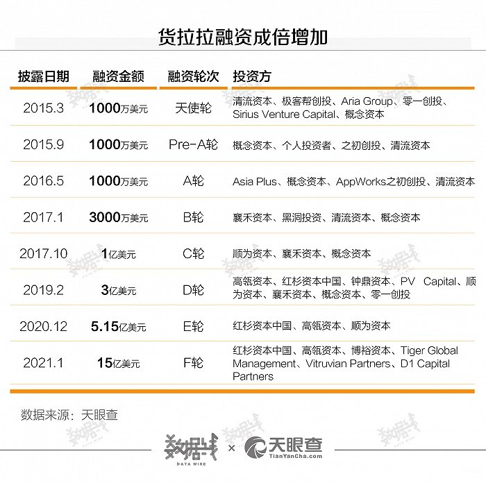 从资本上看,截至2021年1月,货拉拉在7年内先后获得8轮融资。2020年12月和2021年1月,货拉拉共完成20.15亿美元融资,是前6轮融资总和的4倍还多。目前,货拉拉的最新估值有望达到100亿美元。