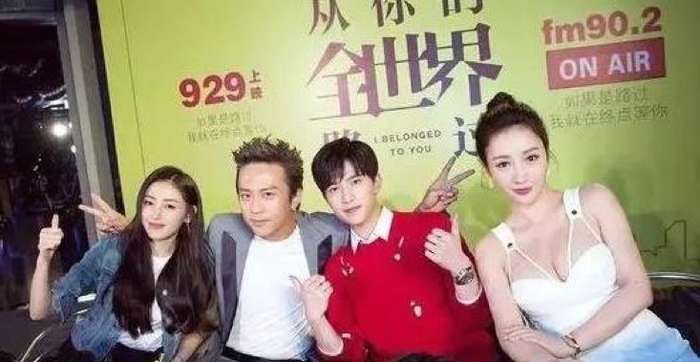 后来,《从你的全世界路过》电影宣传时,几个主演抱在一起,只有她一个人离远端坐。