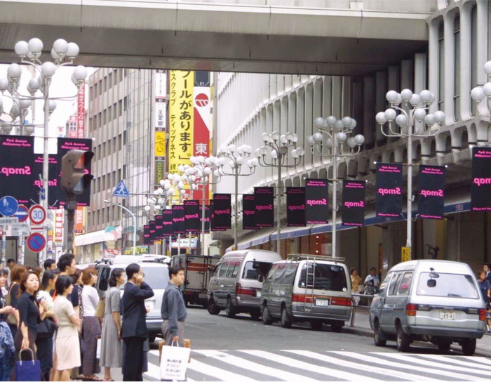 我选择了在东京最多年轻人聚集的涩谷,将涩谷这座城市作为媒介,为路边的汽车盖上汽车罩、占据道路的所有旗帜、分发可以贴在身上的贴纸。开展各式各样有趣的活动,让城市景观成为SMAP的标志。