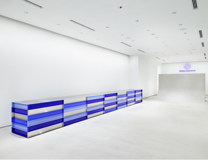 下面是一家销售头发护理产品、洗发水和染发剂的日本公司,名为Beauty Experience(美丽体验),其空间设计非常具有标志化。