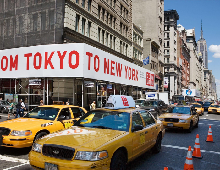 纽约开店之前,优衣库购买了大约一半的黄色出租车广告位,这些带着优衣库红白logo的出租车在曼哈顿中心附近日日穿梭,完全不了解优衣库的纽约人渐渐认识了这一品牌。半年后,优衣库正式开店。