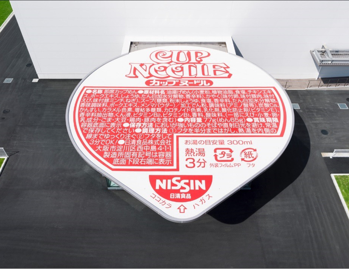 在为日清方便面设计工厂的时候,我将方便面杯盖的形式融入其中,因为日清发明了世界上最早的方便面。这是一个非常具有标志性的入口,独特、创新、有趣,从谷歌地图上都可以清晰看到。