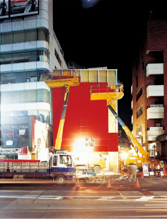 比如时尚品牌OZOC旗舰店,在年轻人聚集的东京原宿,突然建起这样一幢鲜红色的建筑物,这件事本身就很有噱头,我以此为广告宣传,叫做原宿广告建筑项目。