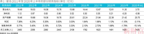 Wind数据显示,2011年至2019年,星岛新闻集团的营业收入从19.49亿元降至11.35亿元,节节下滑;净利润规模从盈利1.12亿元跌至亏损2000万元,经营情况可谓江河日下。从销售净利率、ROE可见,星岛的盈利能力微薄,多年处在勉强盈利状态(表1)。截至2020年上半年,其亏损进一步扩大至5600万元,财务已陷入泥潭。