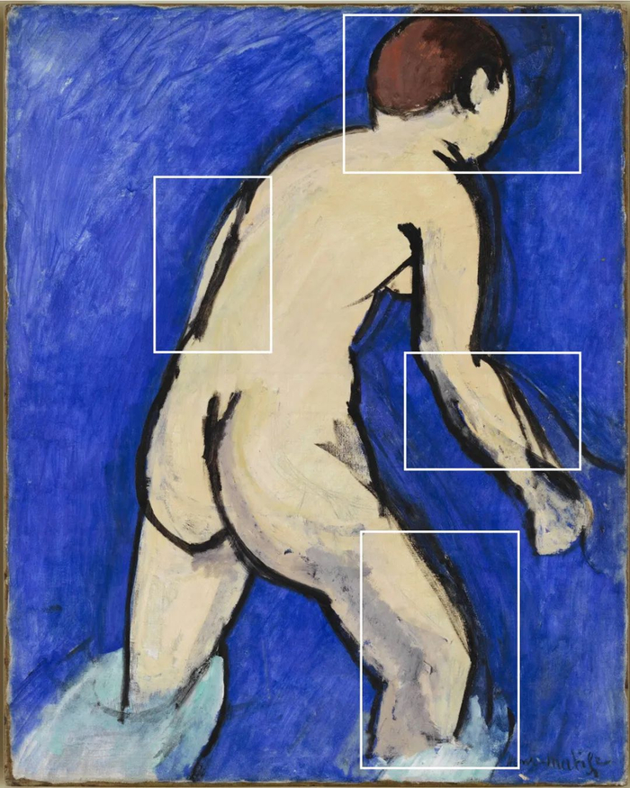 在纽约现代艺术博物馆MoMA馆藏的马蒂斯作品《浴者》(Bather)的画布上若干修改的痕迹,显示出他对于描绘“简约”形象而做出的并不简单的努力。近期,MoMA绘画与雕塑部策展人郭怡安(Michelle Kuo)和MoMA高级绘画修复专家安妮·艾维瑞姆(Anny Aviram)一起谈论了这幅画背后的秘密。