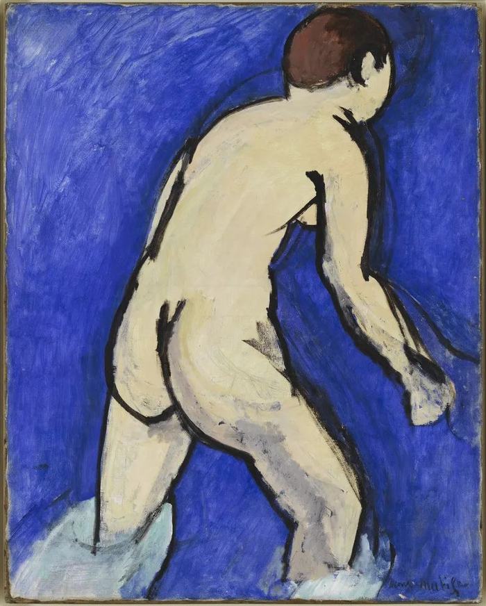 《浴者》虽然不是马蒂斯最有名的作品,但可贵的是,他在这张画布上保留了若干修改的痕迹,显示出他对于描绘“简约”形象而做出的并不简单的努力。对于研究者来说,这幅画可能更具吸引力,从中能看到马蒂斯是如何为一张看上去简单朴素的画煞费苦心的。