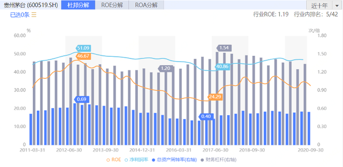 投资大师沃伦·巴菲特将ROE视为一个重要的指标,其持有的公司都具有高ROE的特点(高于10~15%)。观察公司ROE走势,有助于了解公司的盈利能力变化趋势。