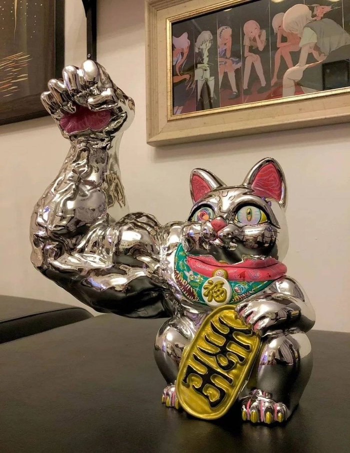 这款招财猫原本是他创作的艺术作品,命名为“大力招财”,那条巨大的手臂,其实象征着每一位和你我一样的打工人的辛酸。