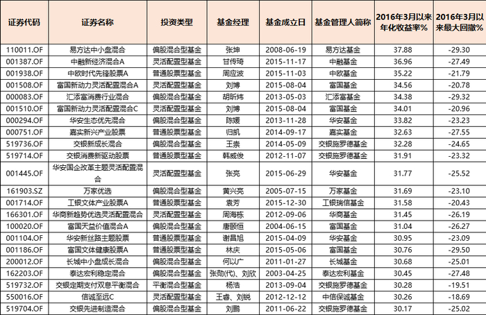 表中的易方达中小盘混合、中欧时代先锋股票A、汇添富消费行业混合、富国新动力、工银文体产业股票、交银新成长等等,均是如今广受基民好评的明星产品。