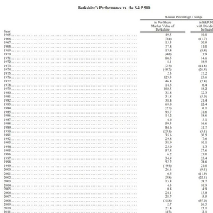 综上所述,如果查理和我对我们的第五桶没有特别的亲缘感,那我们就没有人性了。第五桶就是超过百万的个人投资者,他们相信我们会代表他们的利益,不管未来会发生什么。他们加入我们并不打算离开,他们的心态与我们最初的合作伙伴相似。事实上,在我们合伙期间的许多投资者,以及/或他们的后代,仍然是伯克希尔的主要所有者。