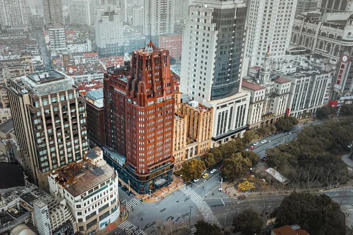大楼坐北朝南,地上22层,地下2层,标高83.8米,钢架结构,装饰艺术派风格。1950年,大楼顶中心旗杆被确定为上海城市坐标原点。2006年5月25日公布为全国重点文物保护单位。