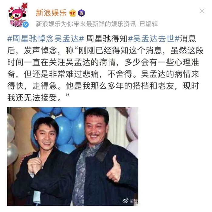 达叔去世后,周星驰发声悼念:
