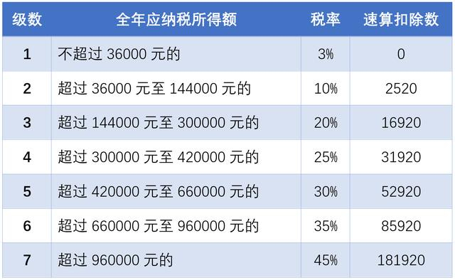 个人所得税税率表