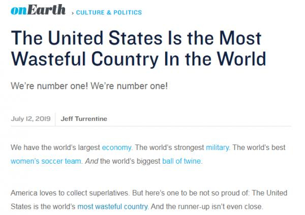 如此,带来的浪费自然不小。2019年8月《纽约时报》一篇题为〈后工业时代的美国拾荒大生意>文章称,美国人均产量超过世界上任何其他国家的一样东西就是垃圾,美国每年产生的所有垃圾,总重量比纽约帝国大厦高出700倍。文章说:“美国人只占世界人口的4%,但却产生了全球每年12%的垃圾。根据美国环保署的数据,我们每年填埋84万吨塑料盘子和杯子,340万吨尿布,820万吨衣服和鞋子,91万吨毛巾、床单和枕套。”