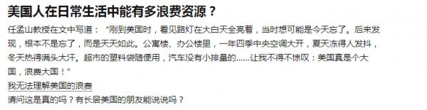帖子下有过美国生活经历的网友纷纷现身说法,述说美国人对油、水、电、物等资源的全面浪费。真是不说不知道,一说吓一跳。例如最高赞的答案: