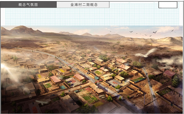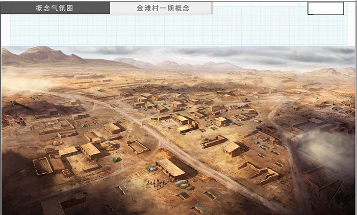 剧组在拍摄地重建一个“金滩村”。戈壁风沙太大,风一吹,“房子”摇摇欲坠。除了有内景戏的房屋,其余场景真实参考当年第一代移民的方法——不打地基直接起房。