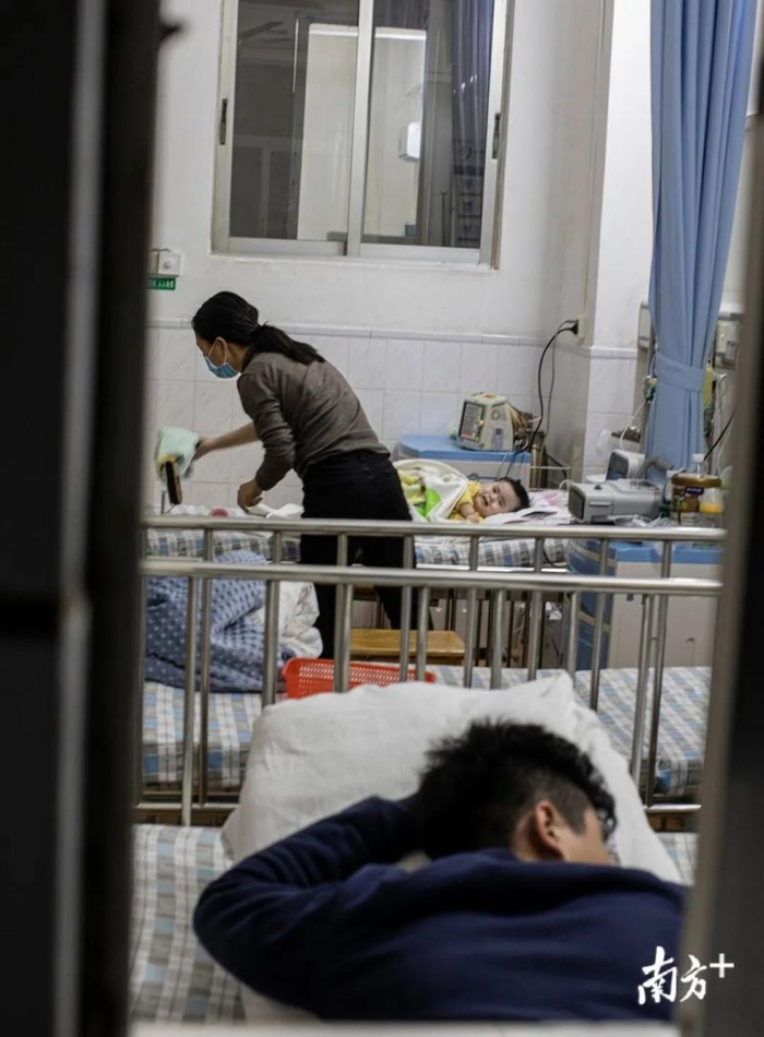 每天需要雾化、拍背、咳痰、吸痰、注食,以及24小时血氧和心率监测,平均8000次的拍背护理,痰多的时候,一天吸痰次数多达20次,遇上较重的肺炎,就得马上叫救护车送往医院。