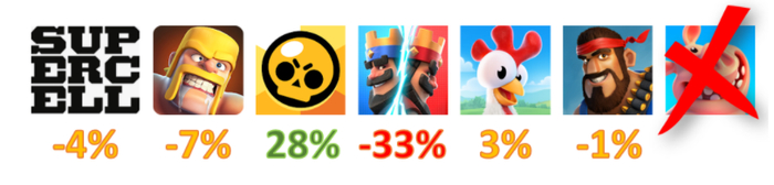 IDFA不会造成太大的影响。Supercell的主力产品都是现有的游戏,而且表现强劲。对于用户获取的需求并不旺盛。同时,即便有新的产品,Supercell也会更多地把重点放在品牌、影响力上。