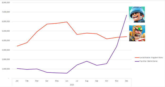 《部落冲突》的年终更新很成功,并借此有效避免了更大幅度的收入下滑。至于《海岛奇兵》,其在2019年年中的大型更新没能让游戏重新焕发活力,此后游戏一直保持着稳定的状态。
