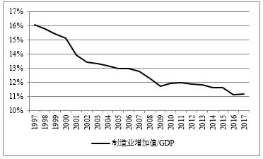 图4 1997-2017年美国制造业增加值占比变化情况