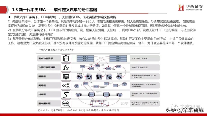 传统汽车EE架构下,ECU难以统一,无法进行OTA,无法实施软件定义新功能;