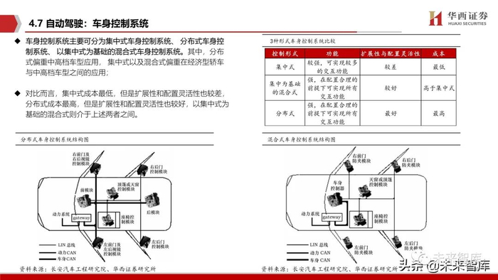 1)分布式阶段:特定的功能由特定的ECU控制,这种结构无法承受汽车功能日益丰富的趋势,过多的ECU导致EE架构极其繁杂;