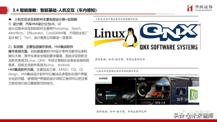 2)硬件工程:包括显示硬件(屏幕、HUD等)、交互设备、摄像 头、通信单元/网关、座舱域控制器等。