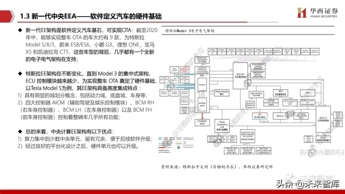 新一代EE架构是软件定义汽车基石,可实现OTA:截至2020 年中,能够实现整车 OTA 的车大约有 9 款,为特斯拉 Model S/X/3、蔚来 ES8/ES6、小鹏 G3、理想 ONE、宝马 X5 和凯迪拉克 CT5,这些车型的背后,几乎都有一个全新 的电子电气架构在支持。