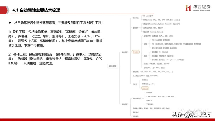 从自动驾驶各个研发环节来看,主要涉及到软件工程&硬件工程:
