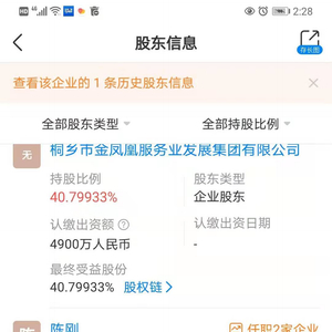 天眼查信息显示,桐乡市濮院毛衫发展有限公司于2017年8月进行了股权变更,公司副总陈刚、景可克成为个人股东,各占股8.37%。