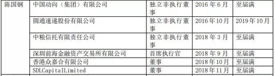 据2019年年报披露,陈国钢彼时在外的任职还包括港股中国动向独董、中粮信托独董,以及两家境外公司的董事。而有媒体称其为“中民投副总裁”的说法并不属实。