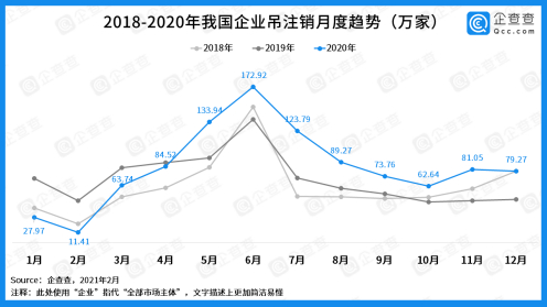 企查查数据研究院认为,由于疫情的隔离封锁等因素影响,前4个月企业在具体的注销或吊销的流程方面受到较大程度的延误,因此,实际上陷入经营困境的企业数量,要比纸面上所呈现的数据多一个等量级。而由于6月份也是往年企业注吊销的高峰期,因此,下半年56.3%的同比增长率或许更能体现2020年存量企业的困难程度。