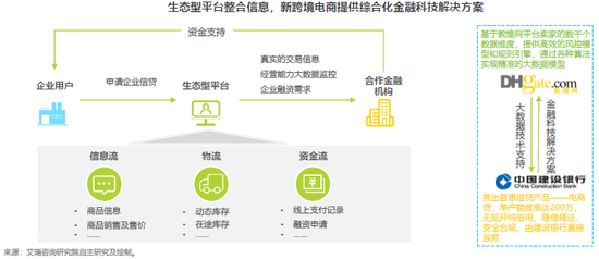 类似的情况出现在金融科技领域。艾瑞《报告》指出,由于受到物流、清关、资金交割时间长、提前备货的影响,资金周转率低成为跨境电商卖家的另一痛点。而跨境电商平台能够依托真实的交易信息,利用大数据技术辅助银行把控操作风险,为商业银行开展金融服务业务提供可行性,满足产业链企业的融资需求,优化资金流。