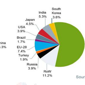 图1:全球粗钢生产分布(单位:%)