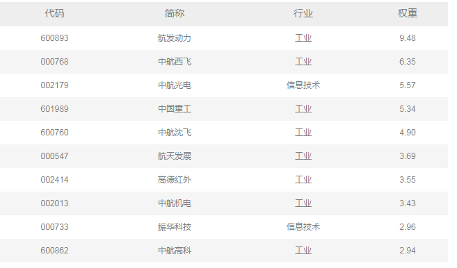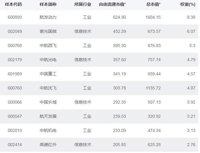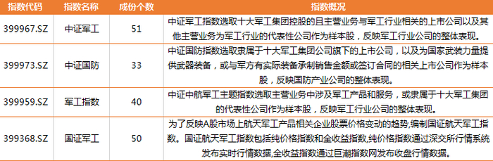 中证中航军工指数选取航天军工主题公司股票组成样本股,以反映此类股票的整体走势。