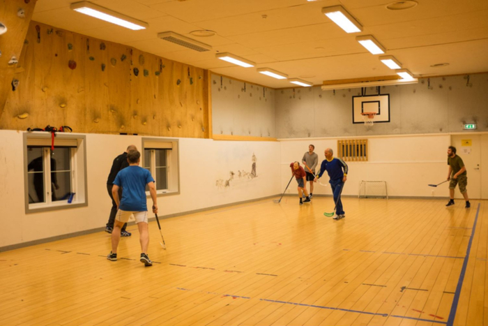 Bandy ball game(室内曲棍球),一般是三对三,5分钟一局,输了一方下场,轮换成新的三人组合。