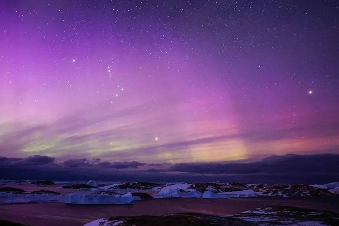中山站附近拍到的南极光