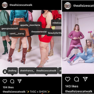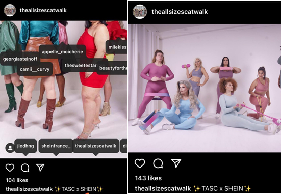 the all sizes catwalk 是位于法国巴黎的一个组织,倡导女性摆脱身材焦虑,大方展示自己的美,该组织经常通过慈善走秀活动来传递这一信念,积累了一定的知名度和口碑。“SHEIN” 在法国购物类 APP 下载排行长期位于前 5,这一次合作对“SHEIN”尤其是在法国地区加强自身品牌形象有很大的积极作用。
