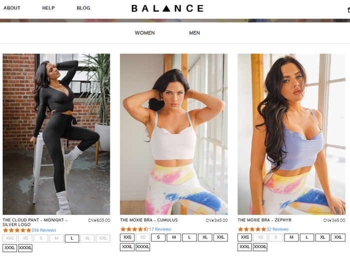 “Balance Athletica”是成立于美国丹佛的一个男女休闲服饰品牌,由 Shopify 提供建站服务。“Balance”是一个家族企业,成立初衷就是照顾到所有体型人群,因此它几乎所有的产品都推出了 XXS-4XL 的尺码,产品以运动服装为主。