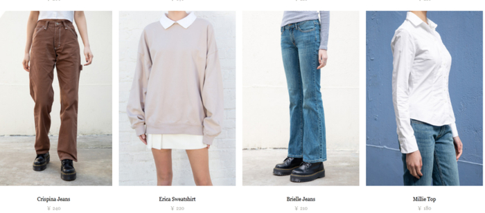社会现状变了,品牌虽然并没有改变目标用户是年轻少女的定位,但其产品价格早就不是普通高中或者大学少女可以接受的程度了。整体来看,“Brandy Melville”现在的定位应该是针对身材纤细的年轻女生的中档潮牌,品牌主打青春、休闲的风格,这和品牌创立背后的爱情故事完美契合。