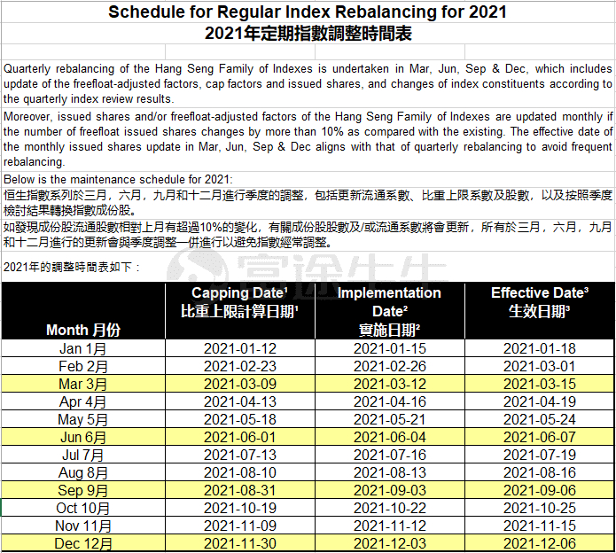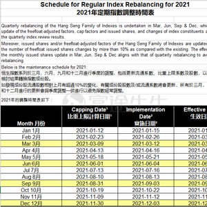 附:2021年恒生指数调整时间表