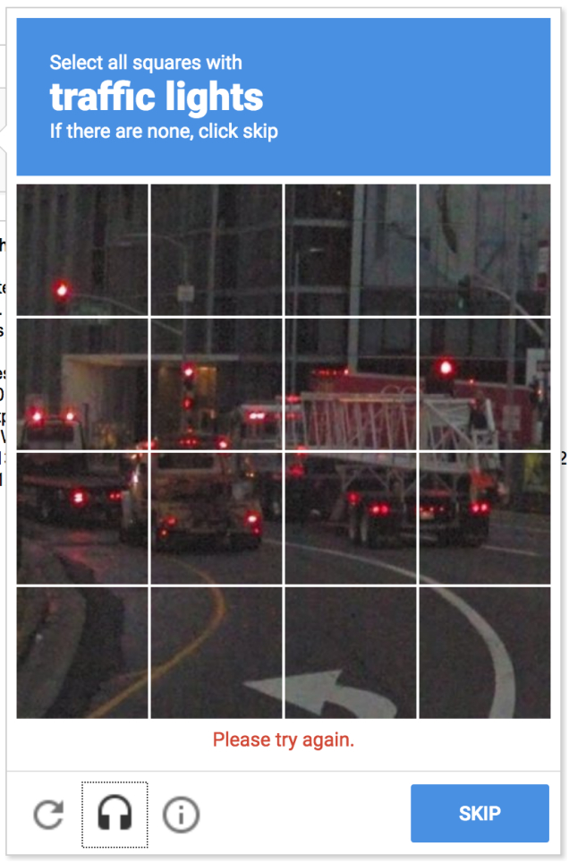 当然,有时Google也无法单纯从你的行为来确认你是否为人类,而这时就会出现图片测试,要求用户选择图片中出现的XX。