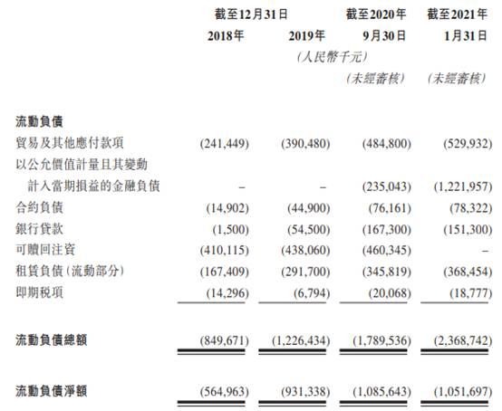 其中公司的流动负债总额分别为8.50亿元、12.26亿元和17.90亿元,流动负债净额分别为5.65亿元、9.31亿元、10.86亿元。