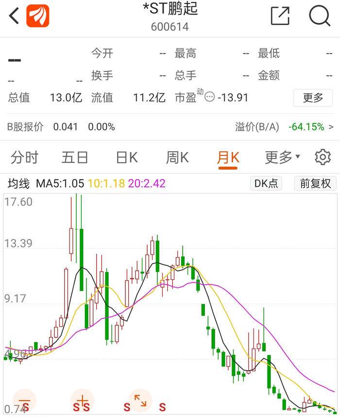 如今,*ST鹏起已连续9个交易日跌破1元面值,已经站在了退市悬崖的边缘,而张鹏起的入狱,或许成为压垮骆驼的最后一根稻草,其股票复牌后,大概率将面临继续下跌的考验。