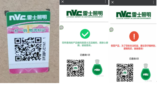 (2)如您已购买雷士照明产品,请扫描产品包装上标贴的二维码查验真伪: