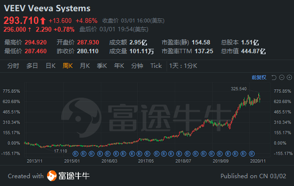 当前华尔街对于Veeva整体看好,彭博一致目标价在320美元。