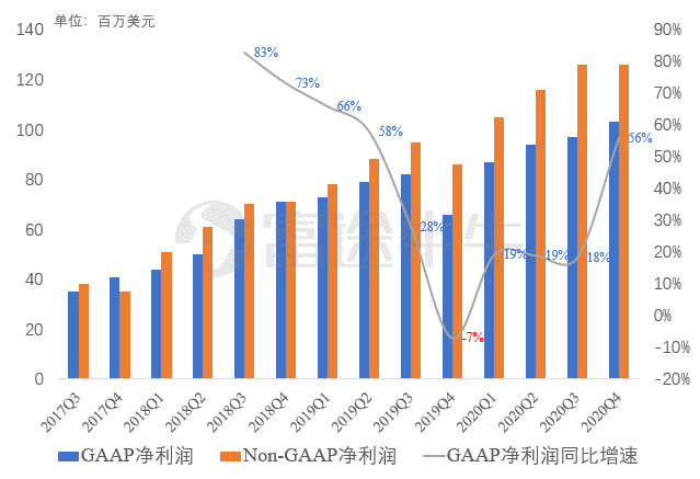 去年Q4公司GAAP净利润1.02亿美元,同比增长56%,增速创一年多新高。