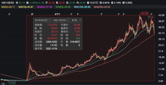 上市不到三年股价飙涨715%