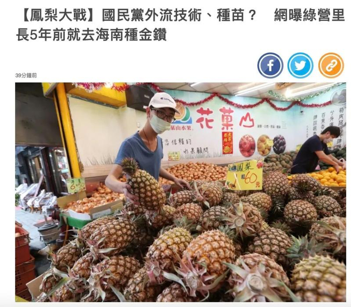 随后有台湾网民在台湾省知名社交平台上发文称“是不是该调查谁把金钻凤梨技术输出的”,台湾网民也就此开展了热烈的讨论和广泛的调查。