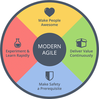 现代敏捷的四大原则:让人变得了不起,持续交付价值,以安全为前提,快速实验与学习